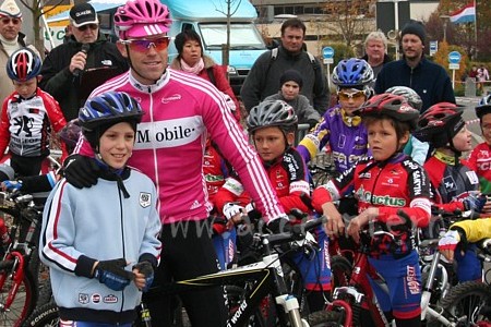 Vor dem Grand-prix Comat stand das Programm ganz im Zeichen von Kim Kirchen und seinen Fans. Bei dem "Supporter-club Kim Kirchen" organisierten Aktivitäten konnten rund 40 Freizeitradler ihr Idol auf einer eineinhalbstündigen Trainingsausfahrt begleiten und danach sogar ein Bierchen mit dem 7. der letztjährigen Tour de France geniessen. Anschliessend kümmerte sich Kim um die 52 Teilnehmer der Yuppi's Trophy, verabreichte den 6 bis 10-jährigen einige wertvolle Tips und posierte auf Erinnerungsbildern. Es war also ein gut gefüllter Tag in Niederanven zum Internationalen Quer des ACC Contern, der wiederum für die viele Arbeit entlohnte.