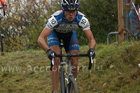 Nach Stationen in Walsdorf, Contern, Steinsel, Kirchberg oder Gonderange hat das internationale Querfeldeinrennen des ACC Contern sich an diesem grauen Sonntag in Niederanven établiert, denn das traditionnelle Rendez-vous in Contern ist in diesem Jahr den Nationalen Meisterschaften im Januar 2008 vorbehalten. Die Meinungen über die neue Strecke rund um das Sport- und Kulturzenturm "Am Sand" gingen auseinander: athletisch und schwer für die Einen, zu schnell und gut fahrbar für die Anderen. Für die Zuschauer jedenfalls wurde etwas geboten: ein schnelles, spektakuläres Rennen, bei dem die Spannung bis fast ganz zum Schluss erhalten blieb. Denn wenn die Fahrer auch die meiste Zeit über in kleinen Gruppen beisammen blieben, so gab es doch einen klaren Sieger, der heute physisch und taktisch überlegen war: Johannes Sickmüller. Der ehemalige deutsche Meister war einer unauffälligsten Fahrer in der Spitzengruppe, hing sogar zeitweise etwas hinterher. Trotzdem hat er mit einem Antritt rund zwei Runden vor Schluss seine Konkurrenten schachmatt gesetzt und fuhr einen souveränen Solosieg heraus, vor dem Franzosen David Derepas und seinem Mannschaftskollegen René Birkenfeld.