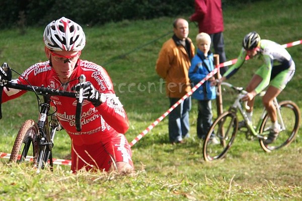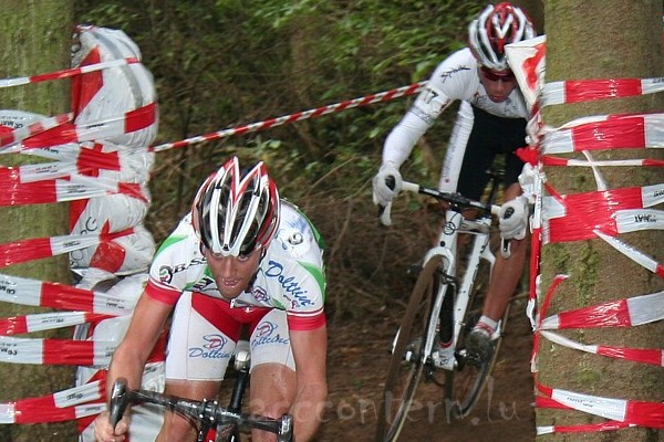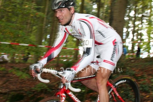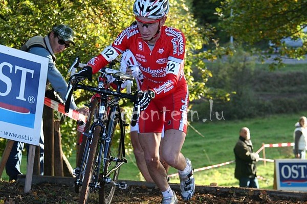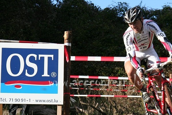 Gusty Bausch hochgehalten werden, denn Jempy Drucker hat erst vor Kurzem seine Strassensaison beendet und wird sich erst nach einer kurzen Pause wieder auf das Crossrad schwingen. Gusty dagegen ist schon seit einigen Wochen durch das Gelände unterwegs und er hat seine Saison mit dem Sieg im heimischen Brouch ganz nach Plan begonnen. Danach musste er sich allerdings mit dem 2. Rang hinter Sascha Wagner in Dippach zufrieden geben und auch sonst lief es nicht mehr so gut. Auf dem ultra-schweren Kurs im belgischen Namur musste Bausch das Rennen aufgeben und auch den enttäuschenden 5. Rang in Kayl möchte er durch eine Top 10 Plazierung in Contern vergessen lassen. Eigentlich fuhr Gusty Bausch immer sehr gut in Contern, im letzten Jahr kämpfte er bis zum Schluss um den dritten Rang und wurde am Ende noch guter 7. Mitreden beim Kampf um die beste Luxemburger Platzierung wollen aber sicherlich auch Vincent Dias Dos Santos, 2. in Kayl mit nur 12" Rückstand auf den Deutschen Meister Sascha Weber, 2. auch in Brouch hinter dem Luxemburger Meister. Der Sieger des Grand-prix Comat 2007 scheint also in guter Form zu sein, um gegen die ausländische Konkurrenz anzutreten, genauso wie Evergreen Pascal Triebel, 3. in Kayl und in Dippach sowie die Olivier Laterza, Benn Wurth, Kim Michely, Claude Wolter und Anderen.