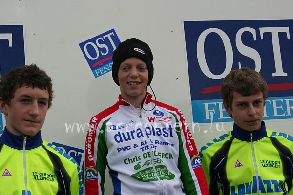 34 coureurs se sont inscrits pour la 33ème édition du cyclo-cross interantional de Contern qui, cette année, était une affaire de familles. Celle de la famille Drucker, dont le père avait brillé de mille feux en 1991 sur ce même parcours et dont le fils était venu se racheter une confiance après un début de saison totalement râté. Celle de la famille Van den Bosch aussi, dont le fils Tom, 6ème l'année passée à Niederanven, brûlait d'envie de se faire mieux et de montre les couleurs de sa nouvelle équipe Rendement Hypo, alors que le père André était jadis un habitué des labourés grand-ducaux et rivalisait avec les Michely et Drucker. Celle de la famille Vanthourenhout surtout, dont l'aîné Dieter, évincé de la sélection belge pour la coupe du monde de Tabor par son propre oncle Sven, avait une revanche à prendre et voulait en faire de même que son petit frère Mike, vainqueur chez les débutants en début d'après-midi.