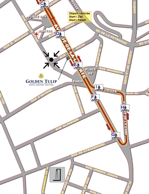 Permanence : Golden Tulip Hôtel Molitor (28, avenue de la Liberté, L-1930 Luxembourg – Tél : +352 48 99 11). La permanence est ouverte le jour de la course à partir de 11h30.